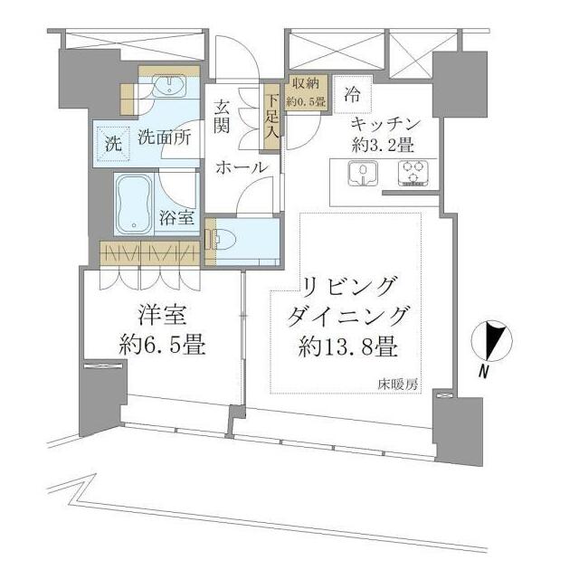 | 間取り | 1LDK(K3.2・DK13.8・洋室6.5) | 主要採光面 | 北 |